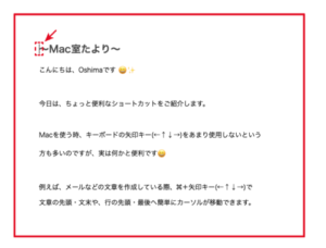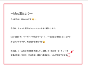 例えば、メールなどの文章を作成している際、⌘+矢印キー(←↑↓→)で