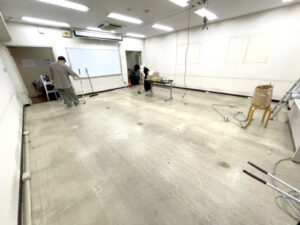 蓄積された床の汚れも、この機会にと一生懸命掃除しました。