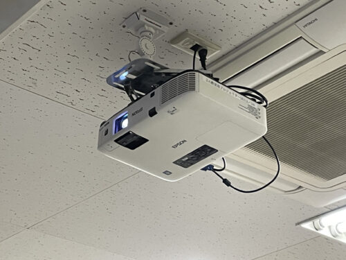 ちなみに、後ろの学生が見易い様、先生のMacは画面を拡大出来る様に設定しています。