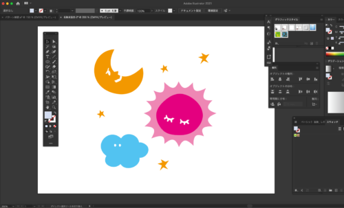 図形や写真をレイアウトしたり、ベタ塗りのイラストを作成するのが得意です。