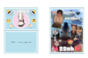 カードの表面には手描きの似顔絵、中面には沢山の思い出の写真を使用し、
