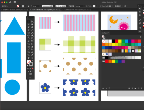Illustratorには、自分で作ったパーツを自動的に連続して並べてくれる機能があり、
