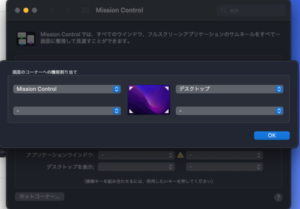 私の場合は、左上をMission Control、右上をデスクトップに設定しています。