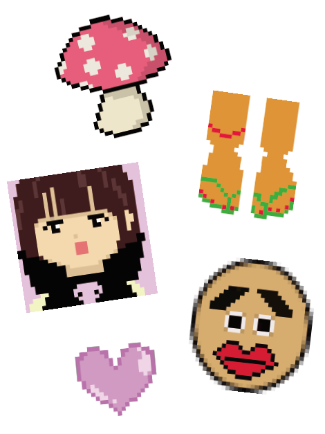 写真は、学生から好評だったドット絵制作課題の作品です。