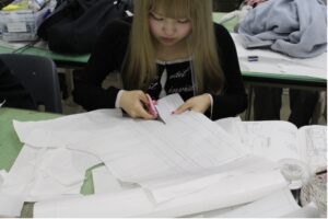 布を切る時も、少しでもずれないように慎重にやっていて、すごく器用だなと思いました。