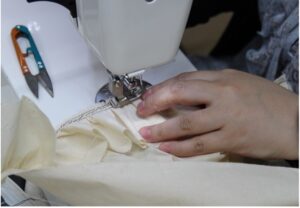 そこでは、ミシンを使って服を作っていました。