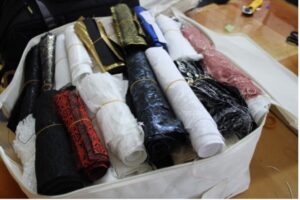 今回断たせていただいた布は舞台でアイドルが着る衣装を作る時に余った布だそうです。