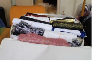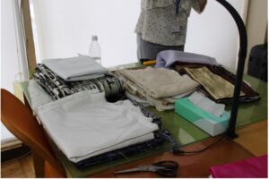 今回裁断した布は衣装を作る時に余った布だそうです。