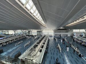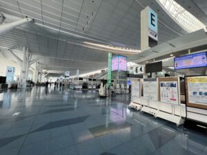羽田空港の国際線ターミナルはガラーンとしていてほとんど人がいません。