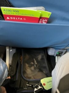 DELTAは機内の座席にペットを乗せてくれるんです。