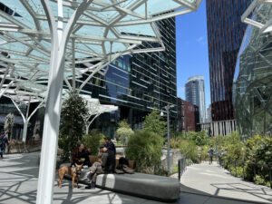 昼休みにはワンチャンと外でのーんびりランチをしている社員さんがたくさんいました。