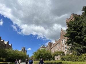 敷地内にモールがあったり、学生用の巨大な駐車場がいくつもあって、