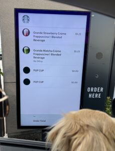 目が血走ってるし、カップに鼻を突っ込んでるし、