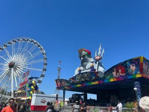 遊園地があり、屋台のお店が300店舗くらい出ていて、