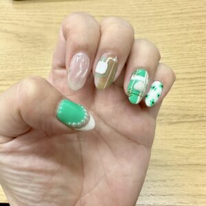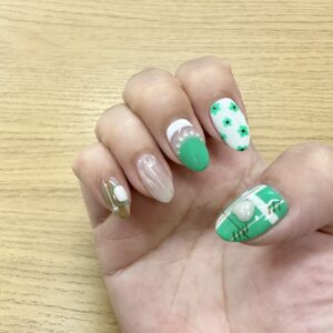 今回は夏らしくカラフルな色を使いたかったので、GREEN NAIL💅