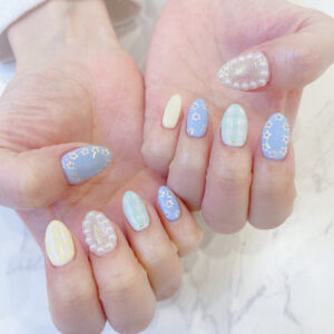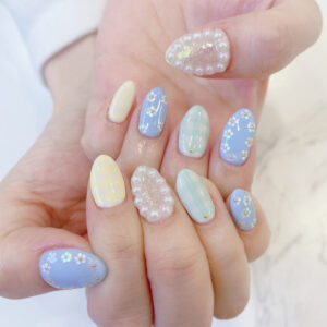 今回は前回黒系のNailだったので、今回は春だし明るい色のネイルにしたくて