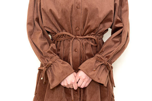 「リボンがいっぱい付いているのが可愛くてお気に入り! ブラウン一色ですが単調になりづらく、さらにウエストがきゅっとしまっているのでスタイルアップ効果も♡」