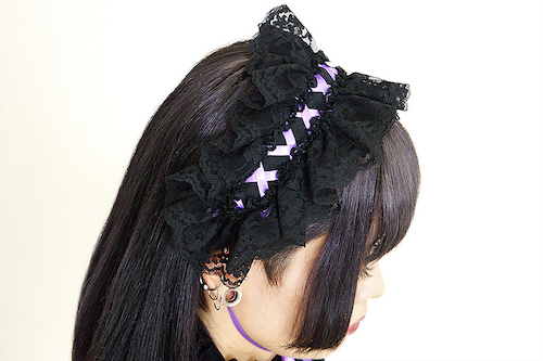 一番のこだわりポイントでもあるヘッドドレスは、なんと手作り!女の子らしい紫色のリボンが良いアクセントになっていますね♪