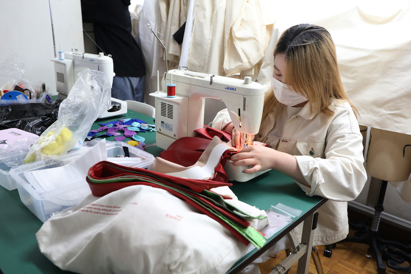 授業課題の合間をぬって、みんなで協力して衣装を製作していますよ🔥