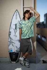サーフィンだけでなく、ファッションに対しても意欲的にチャレンジする宮澤くん。