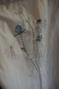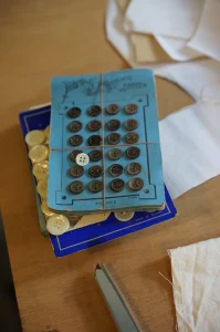 ボタンホール、ボタン付け、刺繍までは自分でやっているようです。