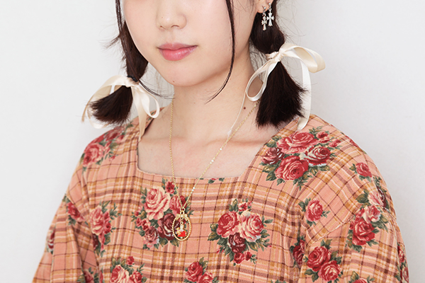 「マロンクリームちゃんのネックレスは、チャームの揺れ感が可愛くて大好き♡ ちょっと懐かしい感じでワンピースにピッタリ合うんです。髪には、手芸屋さんで買ったリボンを付けてます♪ 色んな色があるし結ぶだけなので、既製品よりもコーデの幅が広がりますよ」