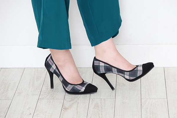 「トップスがチェックなので、足元も『ESPERANZA』のヒールをチョイスして柄を合わせました♡シルエットが綺麗だし、色味的にもこれからの季節活躍間違いナシのお気に入りです」