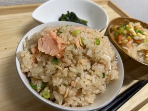 鮭と胡麻の風味が香ばしい炊き込みご飯をメインに、