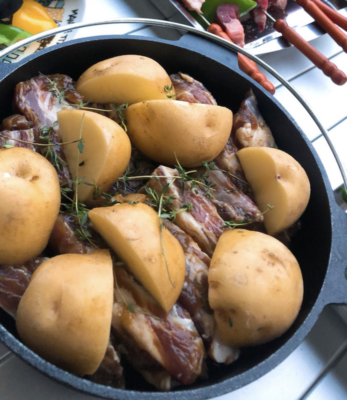 じゃがいもと一緒にダッチオーブンに入れてゆっくり火を通し