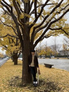 銀杏の木が綺麗に並んでいたので撮ってもらいました☺☺