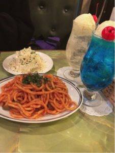 ナポリタンとポテトサラダとクリームソーダです!!!!
