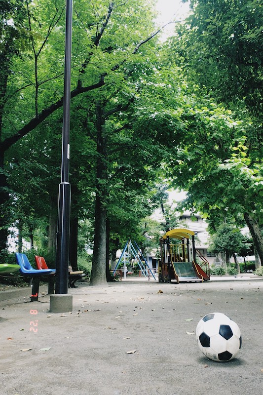 散歩中に見つけた公園で置き去られたサッカーボールが、