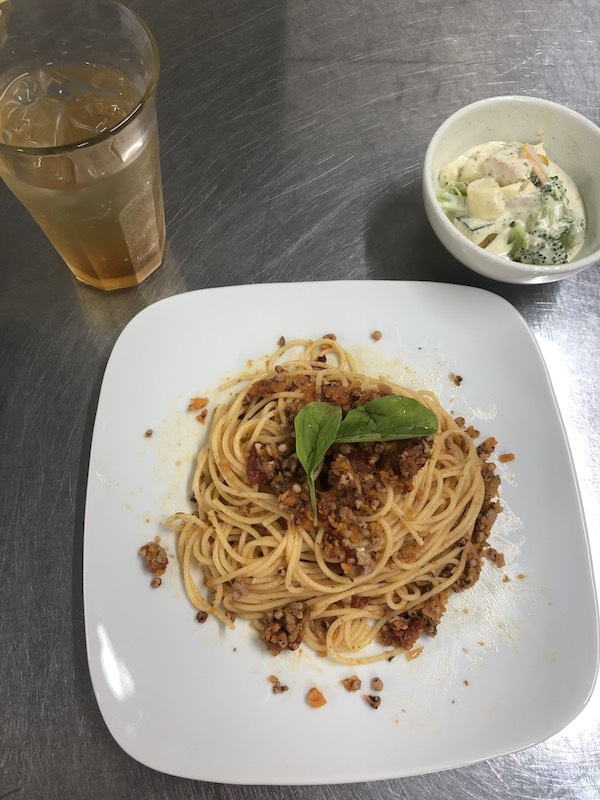 トウキビパスタと、ブロッコリーとカボチャをヨーグルトとマヨネーズで和えたもの、そして自分でブレンドして作ったクラフトコーラです🍝🥗🥤
