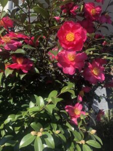 太陽光に当たった椿からとても生命力を感じて、なんだか感動。
