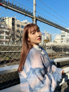 モコモコ暖かくて可愛いので、巣鴨駅の線路沿いで写真を撮っていただきました!!