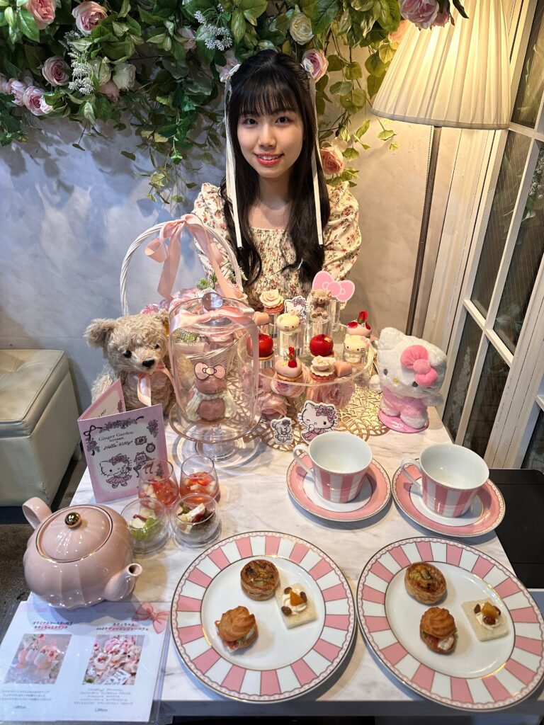 ハローキティちゃんとGinger Garden AOYAMAさんがコラボしているアフタヌーンティーへ行きました🫖🎀