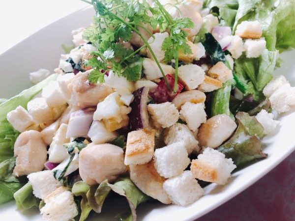 鳥ササミ、パプリカ、アボカド、アーリーレッド、卵、レタス、クルトン!!