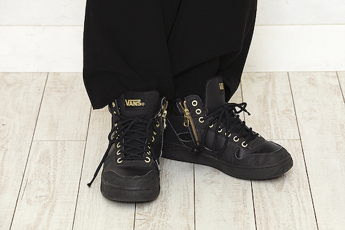 金色のジッパーが目を惹く、黒の「VANS」のスニーカーはSuzukiくんの通学のお供!ゆるっとしたボトムスの裾から、ちらっと見える足元もさりげなくオシャレに♪