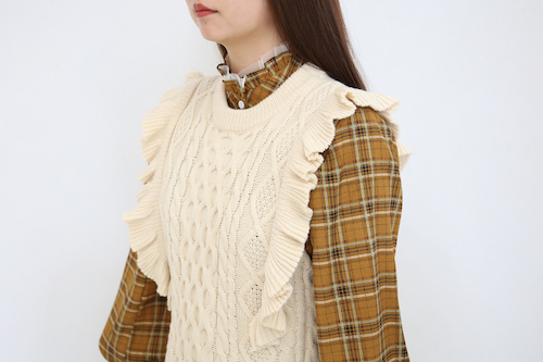 アクセサリーいらずで、華やかな首元に見せてくれますよ^^ ニットワンピースのボリューミーなフリルもNanaさんお気に入り。