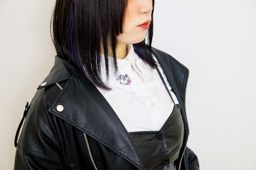 Kikuchiさんの可愛らしさがのぞく襟元に注目! 刺繍風のディズニーキャラクターワッペンが、コーデのワンポイントに♡ 襟つきのインナーを合わせれば、ハード目なスタイリングでも、どこかお上品な印象を演出してくれます♪
