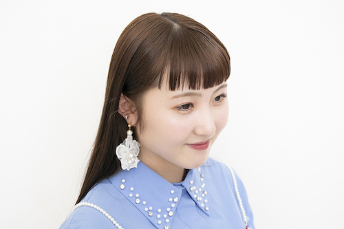 シャツの襟元、大きめのお花がモチーフのピアスにもパールがついていて、春らしい華やかなコーディネートになっています♪