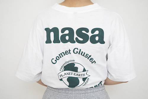トレンドになっているグリーンのバックプリントが、このTシャツの可愛いポイント。正面は胸元にワンポイントなので、シンプルにサラッと着れるところがお気に入り♡