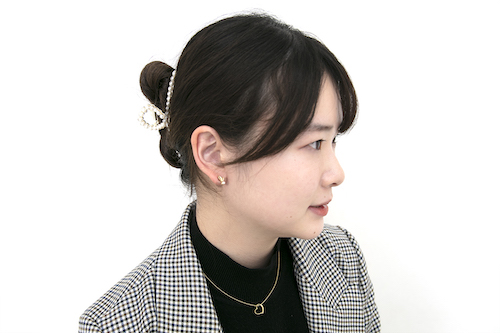 顔周りのアクセサリーはゴールドでまとめてお上品に。ピアスのパールと、流行りのヘアクリップでパールも合わせてみました♪