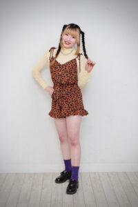 黄色と色合いがマッチしているヒョウ柄のワンピース。