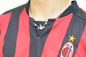 スポーティーな中にVivienne Westwoodのパールネックレスで