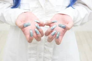 少しでも涼しい気分になれるような夏っぽいデザインのネイルです。