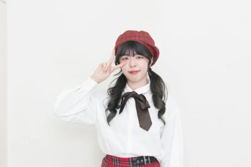 少し学生っぽい雰囲気にしたかったので、ベレー帽とリボンもつけました!