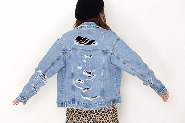 ダメージが大胆な『Bershka』のGジャンは、バックスタイルもステキ! 寂しくなりがちな背中まわりをカバーしてくれるアイテムですね♪ トップスの色がチラッと見えるので、組み合わせ次第でコーディネートの幅が広がります。