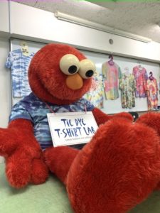 タイダイの暖簾でお出迎え。ビックサイズのエルモちゃんにもTシャツを着せてみました。
