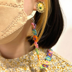 イヤリングもワンピースと同じく黄色のお花が入っています🌼